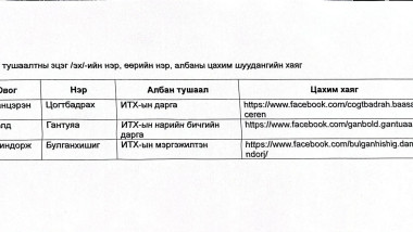 Албан тушаалтны эцэг /эх/-ийн нэр, өөрийн нэр, албаны цахим шуудангийн хаяг