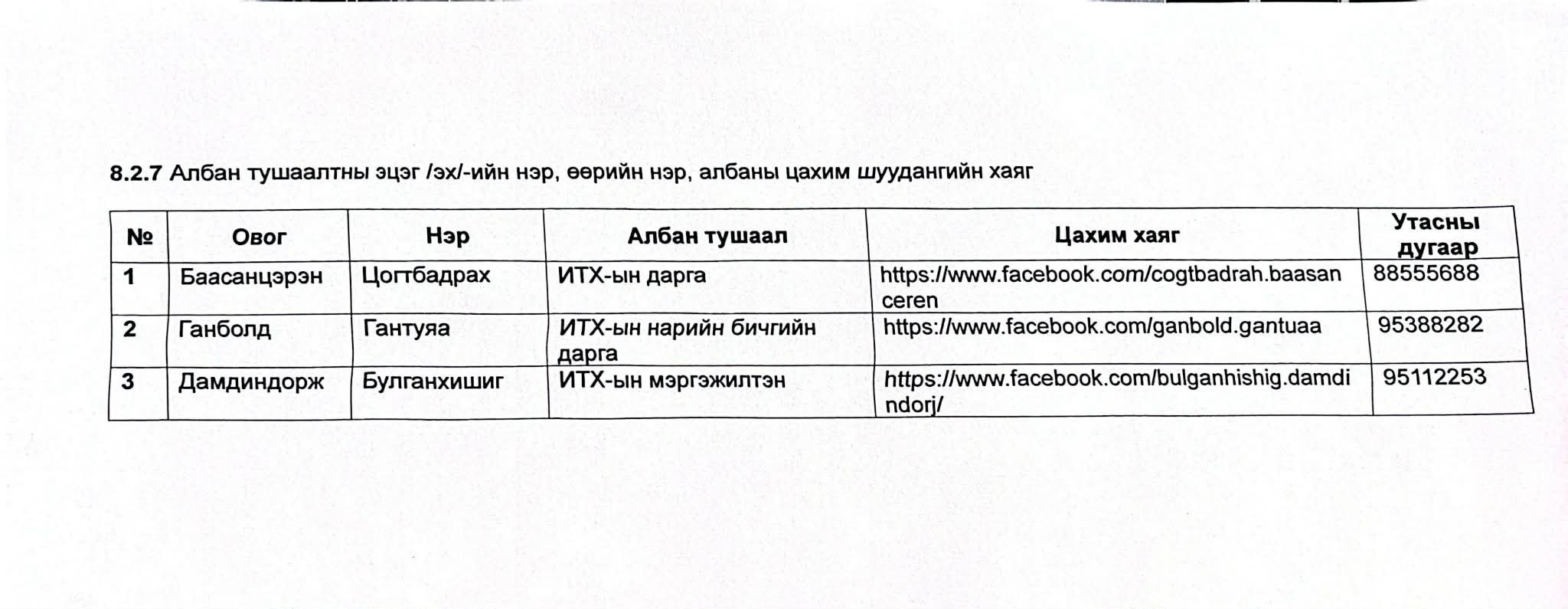 Албан тушаалтны эцэг /эх/-ийн нэр, өөрийн нэр, албаны цахим шуудангийн хаяг